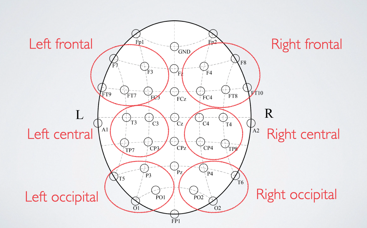 Most prominent in right central ROI (C4, T4, CP4, TP8)
